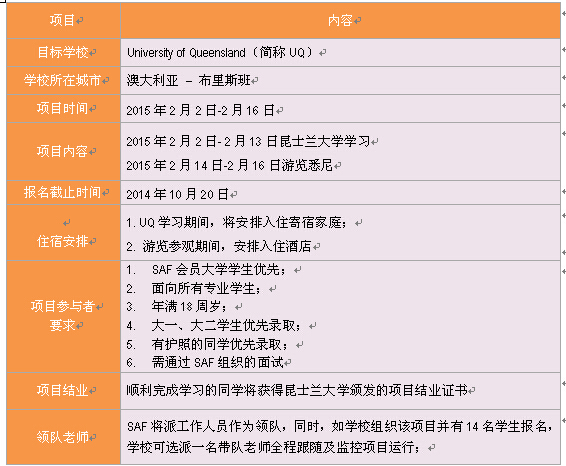2015年寒假SAF昆士兰大学语言文化项目