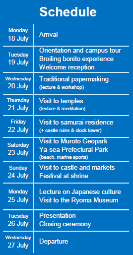 领略日本高知的传统文化、历史艺术和风土人情。项目全程英文, 可结识来自不同国家和地区的朋友。