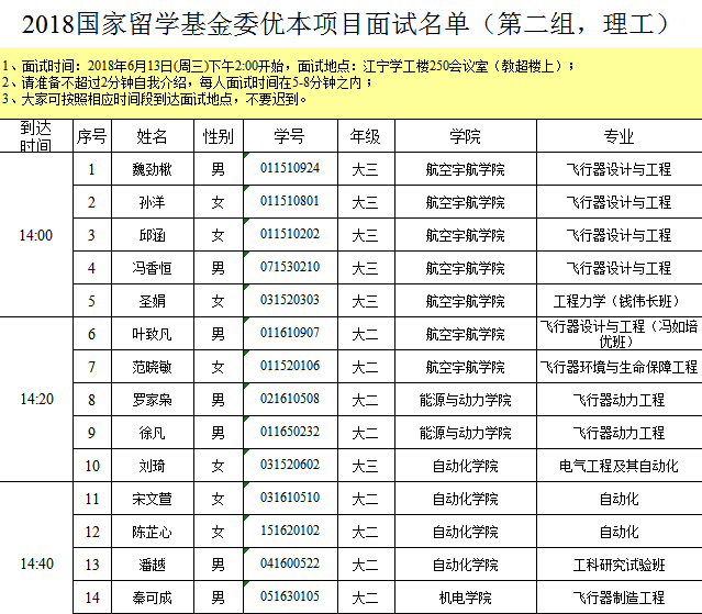 首先欢迎各位同学参加2018国家留学基金委优秀本科生国际交流项目(第二批)选拔面试。面试选拔将本着“公平、公正、公开”的原则,主要考查学生GPA、外语成绩及综合素质等,并且结合学生填报的志愿和是否服从分配进行综合考量。面试具体通知如下:
