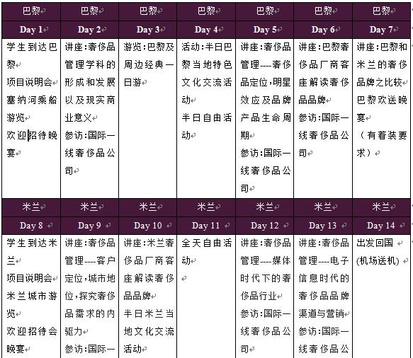 •系统性奢侈品管理和营销运作:项目系统向学生介绍奢侈品特性、奢侈品和时尚的区别、奢侈品定位、品牌建设、以及品牌营销。项目通过课堂讲座、课外阅读、小组项目、实地考察,使学生对于奢侈品管理从感性和理性全方位的进行了解,加深认知。•奢侈品牌参访: 学生将在巴黎和米兰对重要的奢侈品牌(如老佛爷百货、YSL)进行实践参访,了解奢侈品牌市场现状及营销策略,并面对面的和奢侈品牌工作人员交流沟通,理解奢侈品牌所代表的风格和意义。•资深奢侈品管理专家授课:该项目将由长期从事奢侈品品牌建设和管理的专家Cynthia Farhat进行授课,从理论并结合其奢侈品行业从业的实战经验,详细为学生从各个角度揭秘奢侈品管理。•学习成果:识别高端奢侈品市场同大众消费市场的区别,探究奢侈品需求的内驱力,亲身对话前沿奢侈品从业人员,为奢侈品产业生态链做出规划,如何应对行业机遇与挑战。•体验巴黎和米兰两大时尚之都:巴黎和米兰与伦敦、纽约一起并称为世界四大时尚之都。巴黎是高级时装的发源地,也是世界时尚设计和信息发布中心。米兰是高级成衣发源地,也是世界顶级面料制造的基地。这两大时尚之都共同孕育了如Chanel(香奈儿)、Christian Dior (克里斯汀▪迪奥)、LV(路易斯威登)、Prada(普拉达)、Valentino (华伦天奴)等品牌。学生们将充分领略两大时尚之都的魅力。•领略法国和意大利异国风情:法国和意大利是欧洲文明之光的发源地,两国的文化和思想深深塑造了当代欧洲文明。学生们在项目期间将通过社会文化活动体验法国和意大利两国独特的历史人文氛围,加深对现代欧洲的认识和理解。•学生服务完善:SAF必威BW基金会将从咨询、申请、行前、接待、健康安保、应急支持等各个方面为学生们提供全方位的服务。同学们还将受到SAF-IES Abroad巴黎中心和米兰现地团队(包括中心主任、学术负责人、实习协调员、学生事务协调员等)的全方位现场支持和服务。•提供项目证书:项目结束后,学生将获得SAF必威BW基金会颁发的项目结业证书。