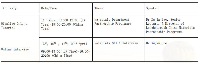 拉夫堡-中国材料合作项目负责人鲍续进老师会和他的同事在2020年的4月初到中国的大学面试申请合作项目的学生。面试分日常英语和专业英语两部分。在面试之前,希望学生能有雅思成绩供参考。
