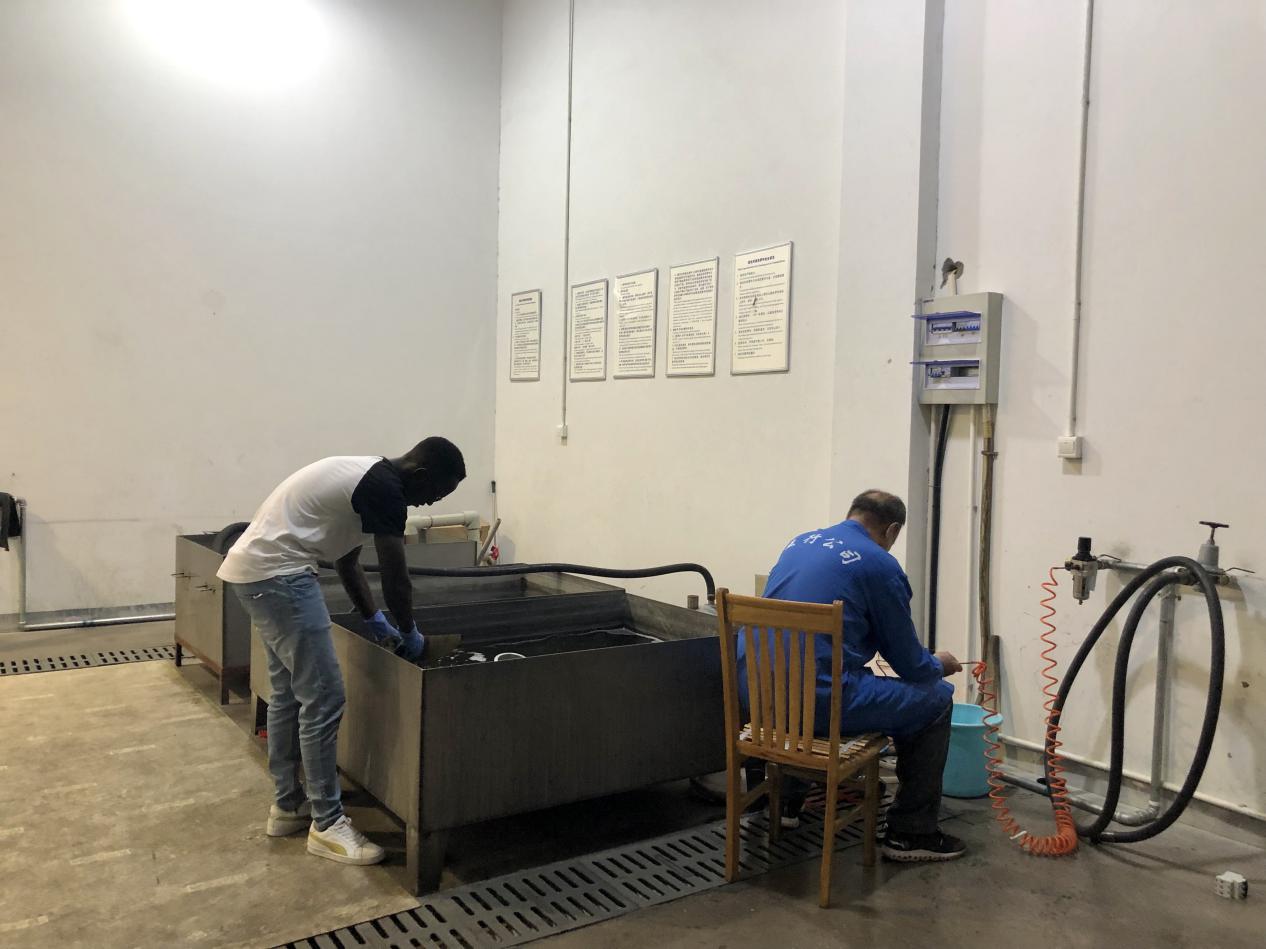7月22日实习开始后,学生们被分为四组,在指导老师的指导下完成不同任务,主要在机轮刹车部和应急滑梯部动手了解、学习航空设备维修。在实际动手操作前,企业指导老师都会向实习留学生统一讲解,以保证学生正确操作设备。