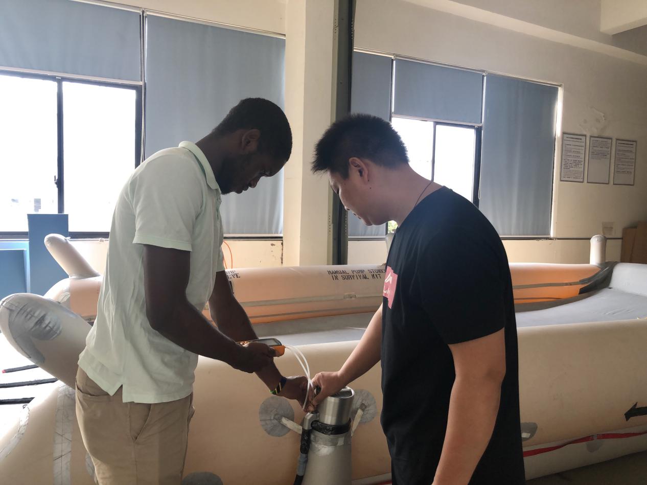 指导老师指导坦桑尼亚留学生苏磊学习测试救生船压力值