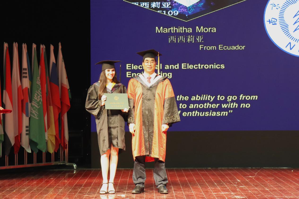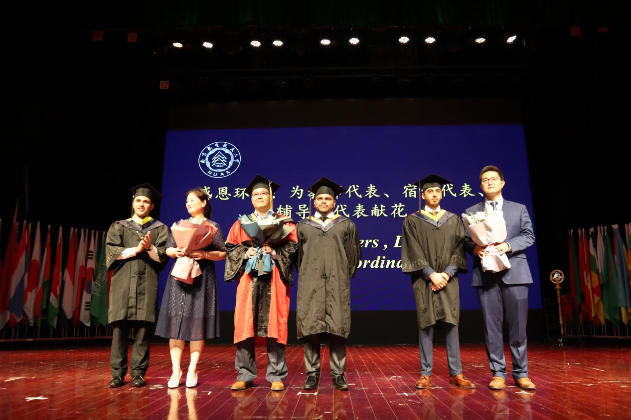 为了表达对南航的感激之情,留学生代表为教师代表、宿管代表和辅导员代表献花,对他们这四年来对学生的默默付出和无私奉献表达了感谢。