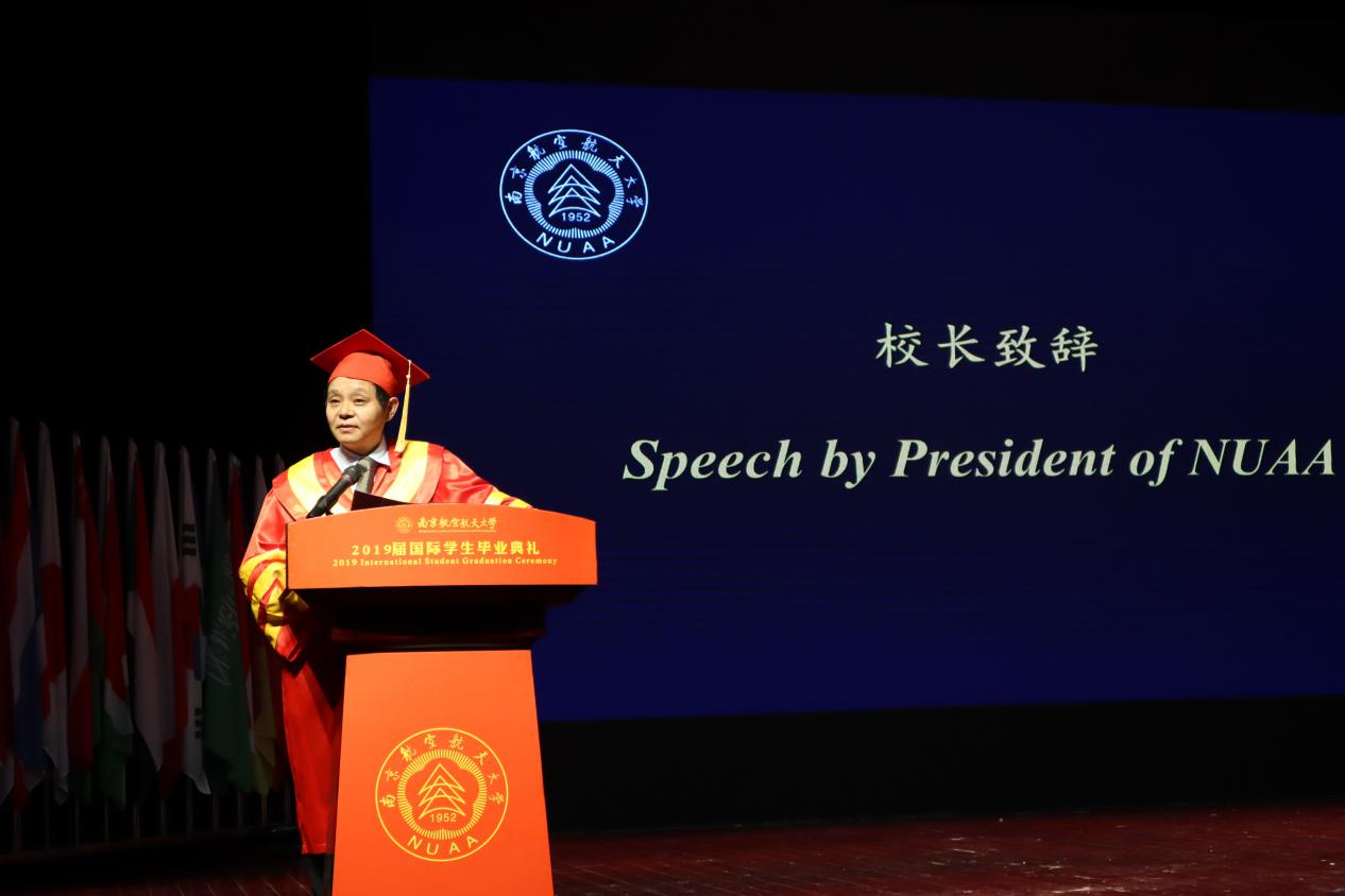 随后,聂宏致辞,他对留学生们送上了诚挚的祝福,他希望留学生毕业后能够利用所学到的知识与技能,服务社会,共创世界命运共同体,南航将永远作为他们坚强的后盾。