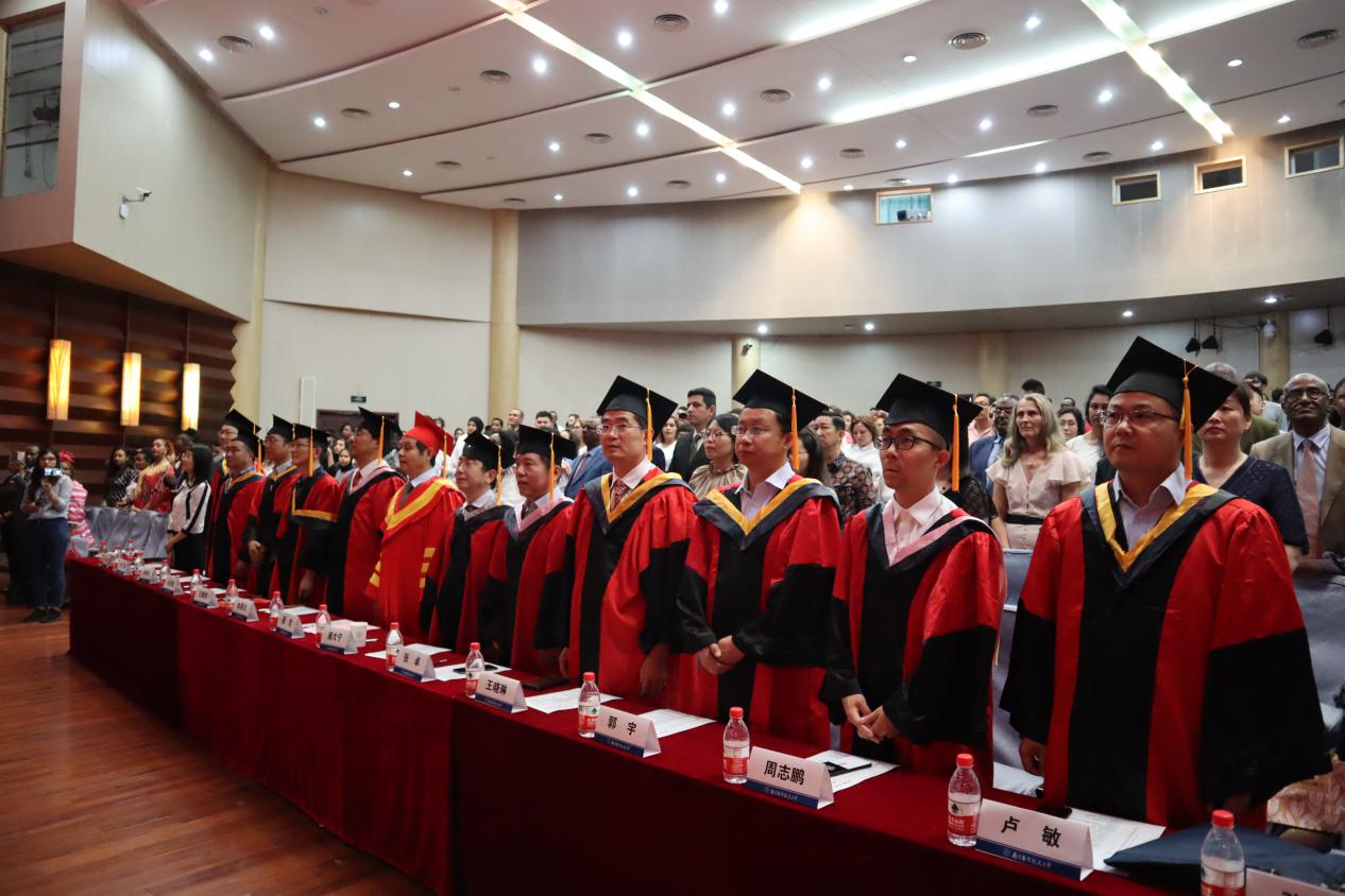6月20日上午,我校2019届留学生毕业典礼暨学位授予仪式在艺术中心小剧场举行。校长聂宏、副校长施大宁,BW·西汉姆联、教务处、国际合作处、将军路校区管委会、相关学院领导及教职工代表和来自世界各地的200余名毕业生及家长代表参加了此次典礼,典礼由BW·西汉姆联副院长张国权主持。