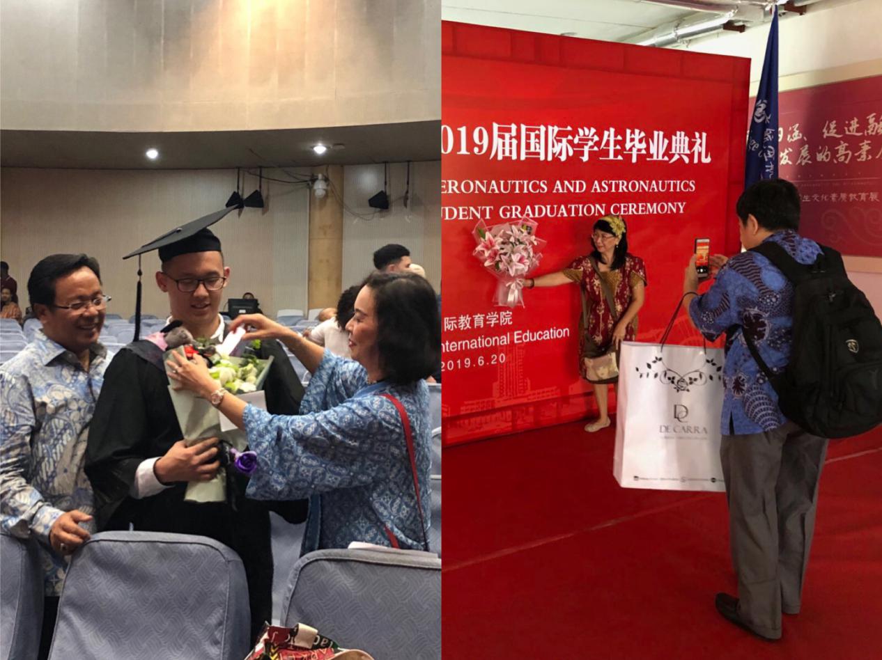 一位来自印度尼西亚的学生家长说,这已经是她第二次参加南航的留学生毕业典礼了,第一次是庆祝她的二儿子毕业,今天则是庆祝她的三儿子毕业,她很自豪自己的两个儿子都能在南航学业有成,也非常感激南航的老师们对她两个孩子的栽培和关心。学生们手持毕业证书,与亲朋好友亲密合影,幸福与自豪洋溢在脸上。家长们看着自己的孩子顺利地在中国、在南航毕业,激动、欣慰之情溢于言表,毕业典礼在同学们的欢呼声中圆满结束。