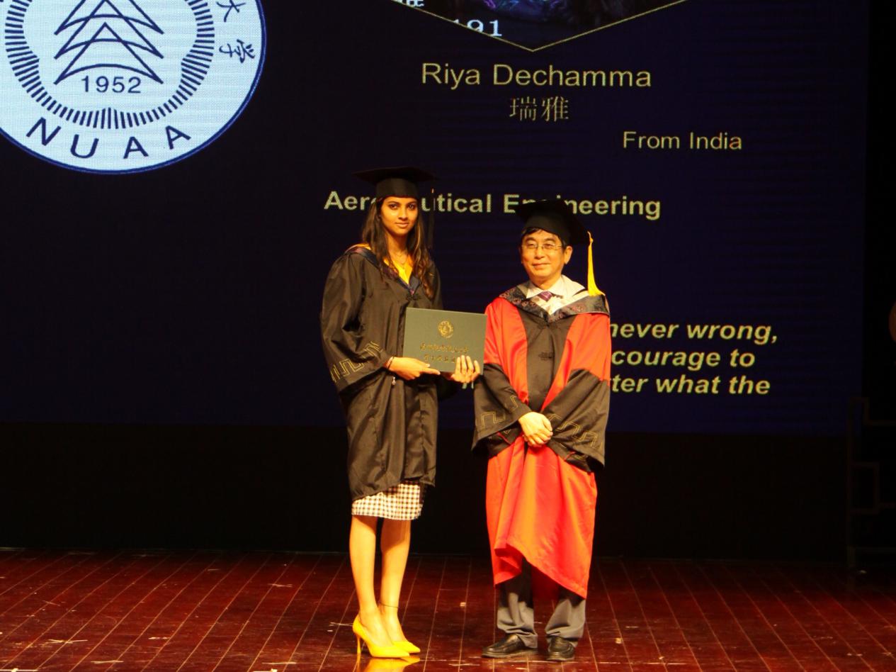 “2015年,我来到南航,怀揣着自己的梦想,我非常期待加入南航这个中国顶尖学府”,“这四年,我有很多启发,让我的人生更加丰富多彩”,“在今天,我想感谢我的任课老师,我的辅导员和我的父母,没有他们的付出,就没有今天的我”,“我想感谢南航给我的一切,教会我们留学生这么多的知识和技能,开阔了我们的眼界,帮助我们成为国际化的人才”,“我想让南航为我骄傲”,视频中一幕幕对毕业生的采访片段引起了在场毕业生的强烈共鸣,赢得了经久不息的掌声和感动的泪水。