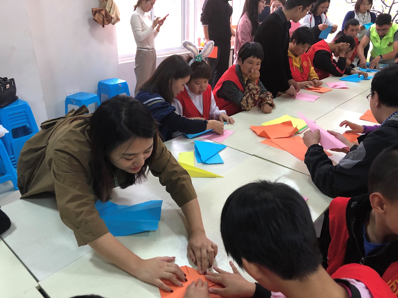 党员老师和君子之家的孩子们一起联谊,手把手教孩子们折叠纸飞机,歌唱祖国和幸福家园。孩子们在飞机上写上自己的梦想,老师和孩子们一起放飞梦想!