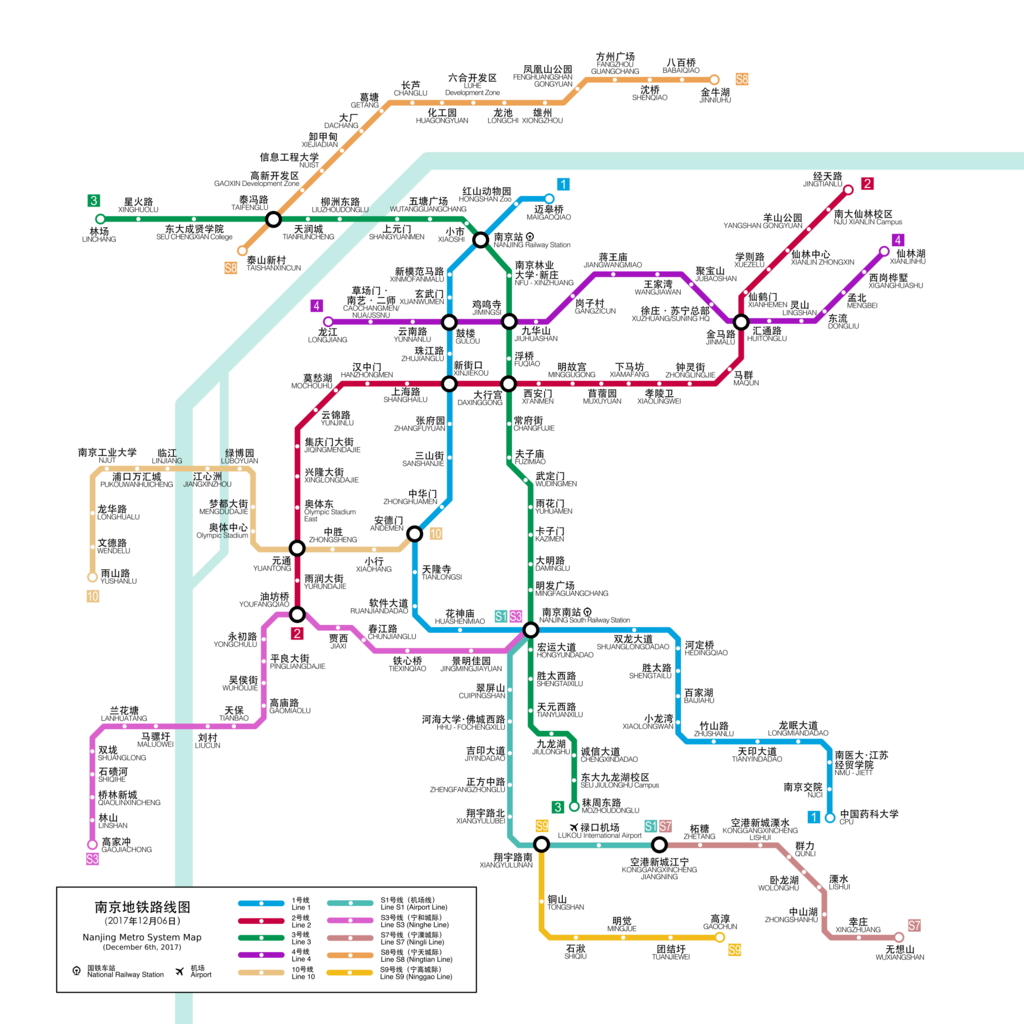 • From 禄口机场 (LUKOU International Airport) until 翠屏山 (CUIPINGSHAN). You do not need to transit because both stations are on the same line.
