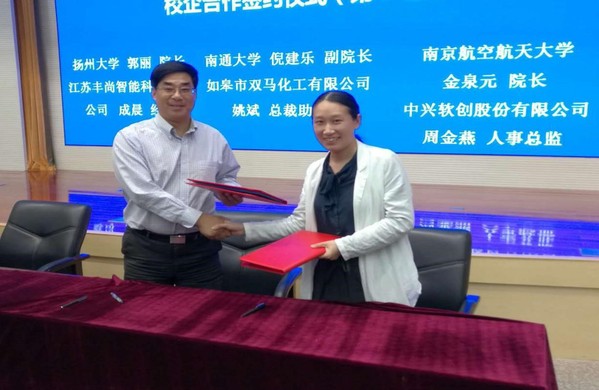图为我校与中兴软创签约留学生高飞、李乐