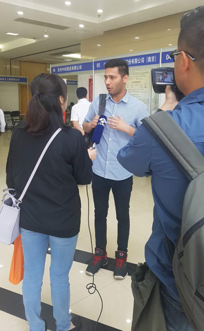 图为我校巴基斯坦留学生贺山接受媒体采访