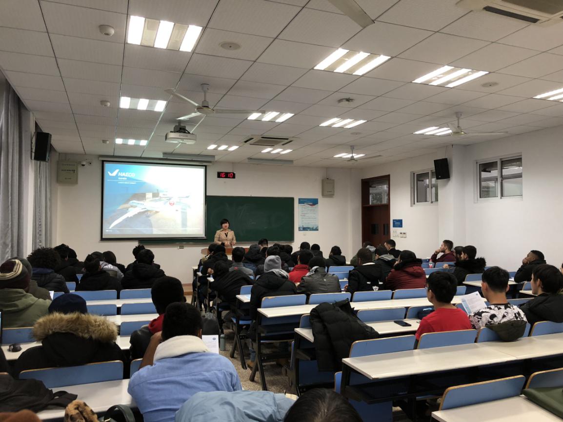 12月18日下午,贲小红主任作为主讲嘉宾就留学生如何申请EASA PART-147基础培训做了主题宣讲,我院六十余名留学本科生参与了宣讲会。宣讲会上,贲小红主任先介绍了厦太的发展历程,企业文化、主营业务、人才培养、岗位培训等信息,然后着重讲解了申请EASA PART-147课程培训的条件、步骤、时间安排,以及今后就业的发展前景等重要内容,并现场详细解答了留学生们提出的相关问题。