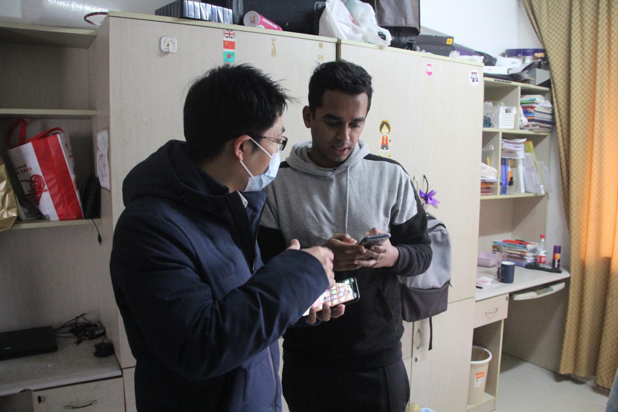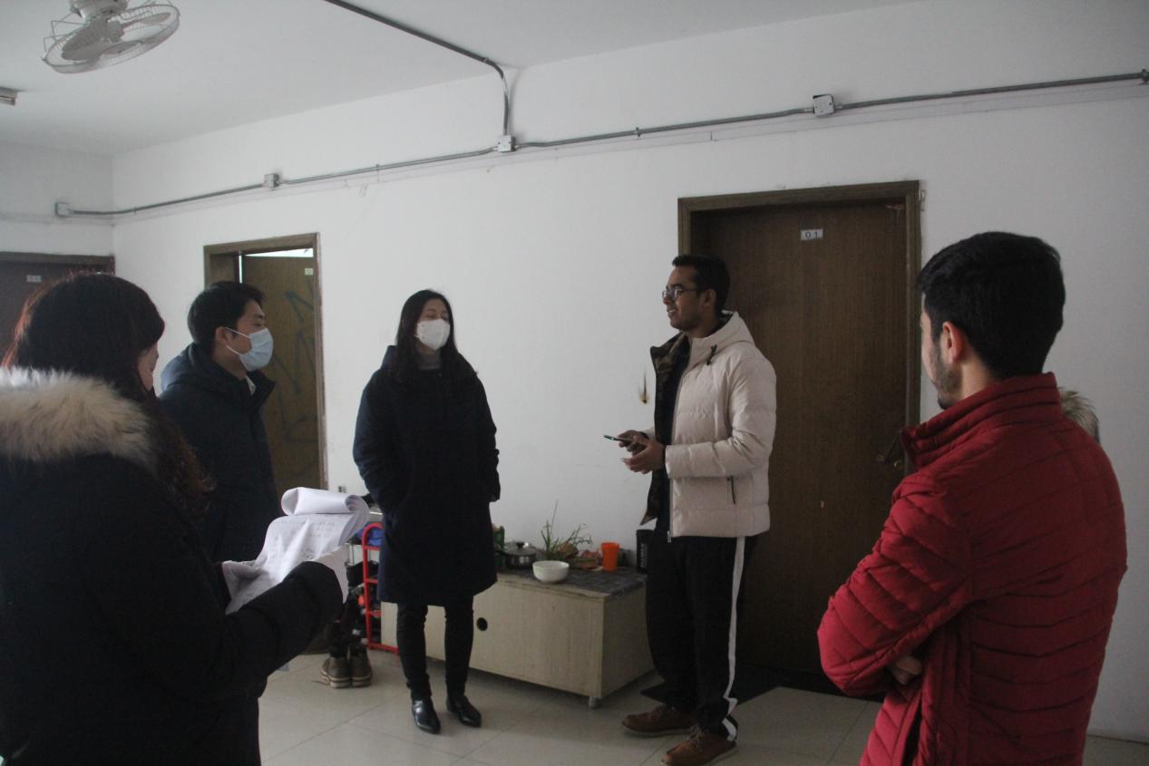 随后,张国权一行逐个走访留学生寝室,与留校学生亲切交谈、悉心询问,了解在校留学生的身体状况以及假期出行情况,根据目前新型冠状病毒性肺炎传播的情况,向留学生宣传新型肺炎的基本知识、防控方法以及我国和我校正在采取的预防措施,希望留学生们能积极配合做好疫情防控工作,保障自己的身体健康。