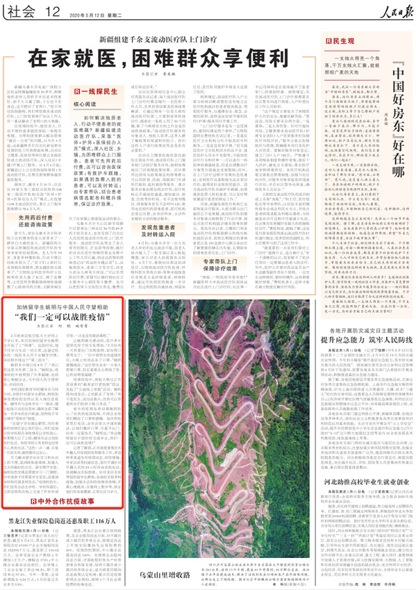 5月12日,《人民日报》刊发《加纳留学生姚明与中国人民守望相助 》一文,讲述了我院加纳留学生疫情期间受助以及助人的故事,展现了我院积极加强籍留学生疫情防控和服务工作。我校新闻网转载了此文。