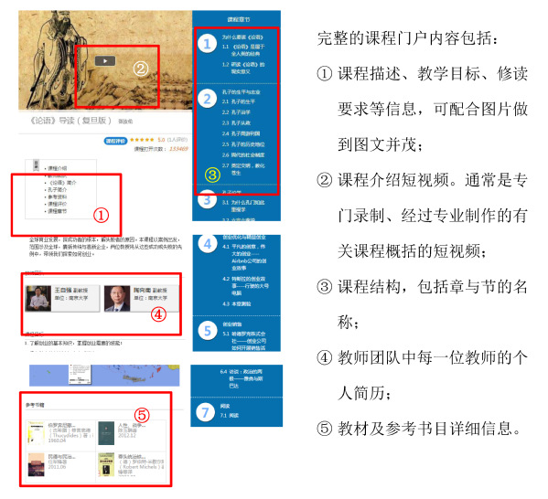(7) 由于留学生全英文授课的要求,网上建课请尽量使用英语。“超星在线教学平台”建课步骤简捷、教师自主性强,若您选择该平台,请务必在新学期开课前完成所承担课程的“课程门户”的建设。课程门户包括课程名称、课程描述、教师团队介绍、章节目录、教材及参考书等,请以英语表述。示例如下:(以某中文课程为例)