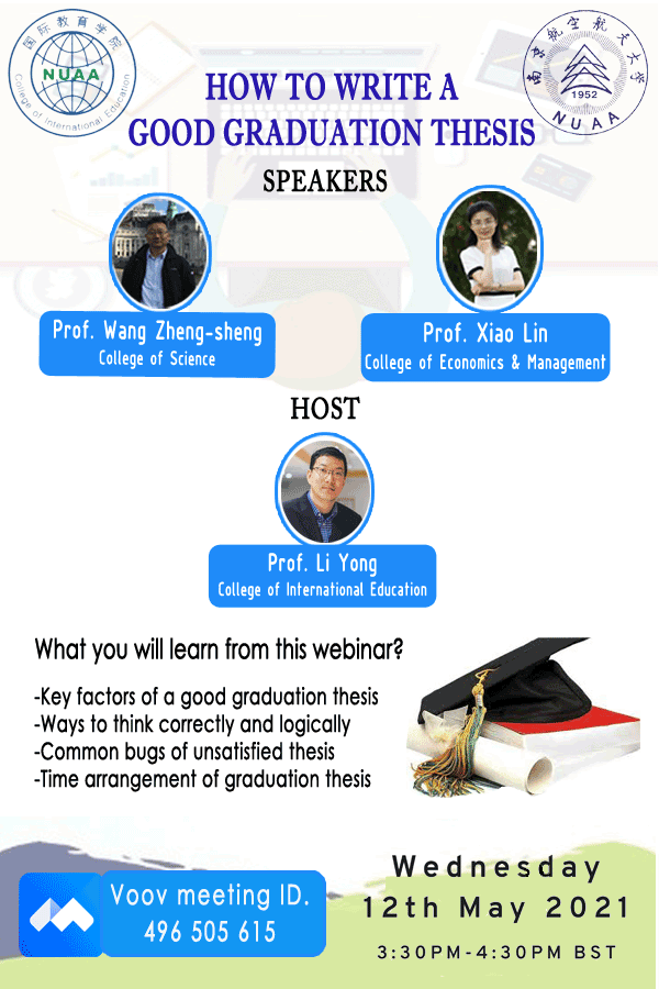 5月12日下午,BW·西汉姆联举办了主题为“How to write a good graduation thesis”的线上辅导讲座, 讲座邀请理学院副院长王正盛、经济管理学院教师肖琳为我校2017级本科留学生作毕业学位论文写作在线辅导。讲座由BW·西汉姆联副院长李勇主持,130余位境内外留学生在线聆听报告并参与互动。