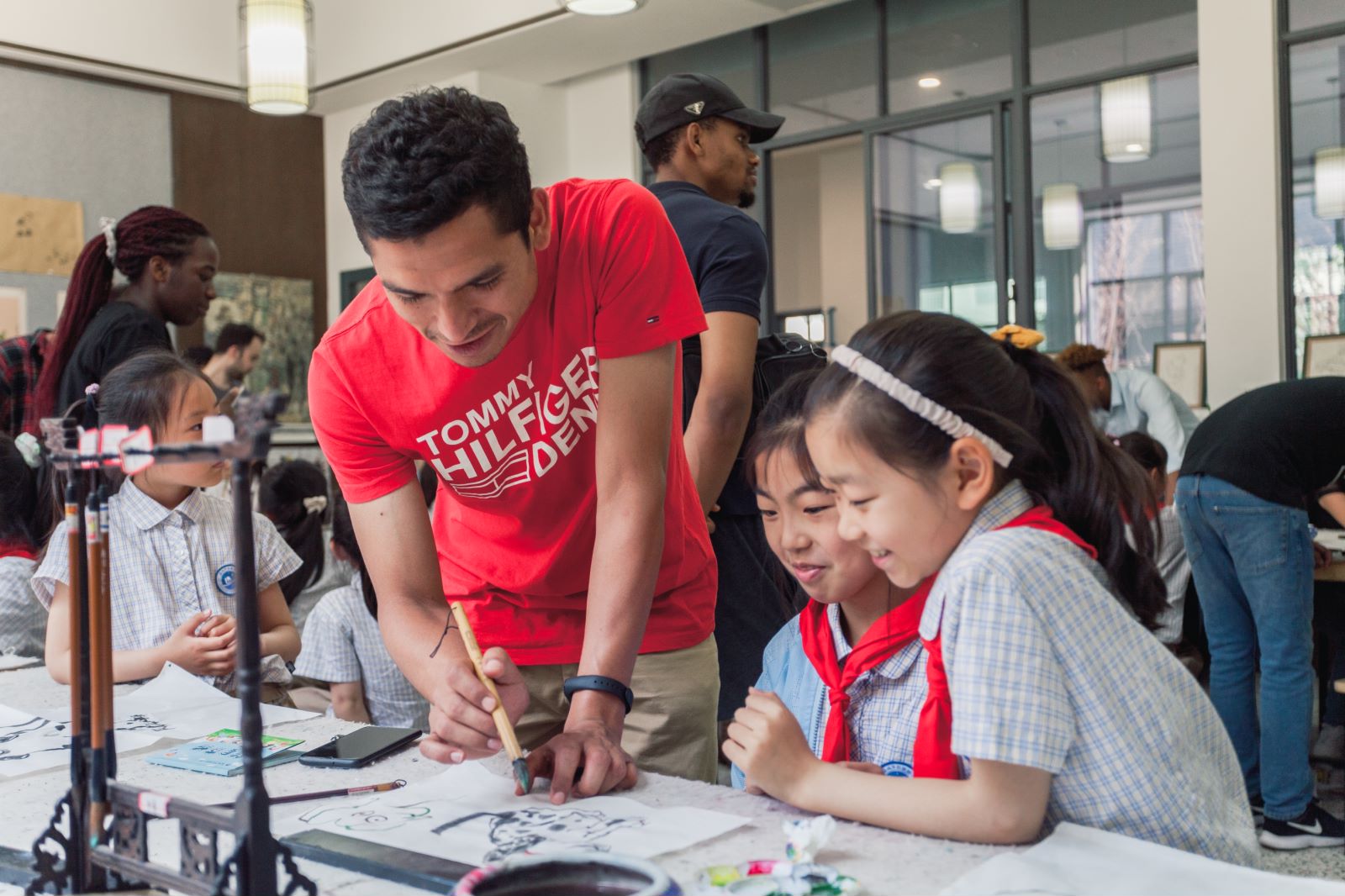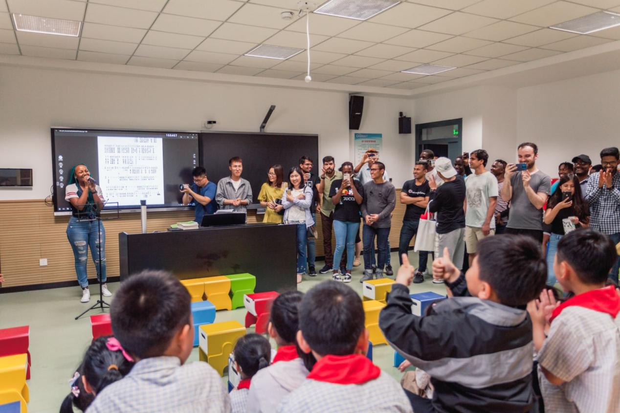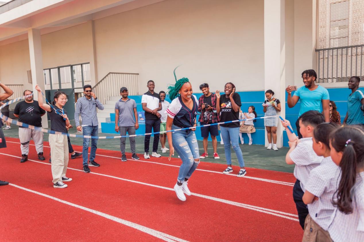 最后,同学们还走进了新都路小学的社团活动课堂,与孩子们进行了丰富多彩、趣味盎然的互动交流。他们一起唱歌、跳舞、跳绳等,对中国的基础教育有了更加直观、真切的认知和体会。留学生们参与到小学生乐器、歌舞、书法、读书等活动内容,加深了对中国艺术的了解,对中国文化的认识和兴趣。