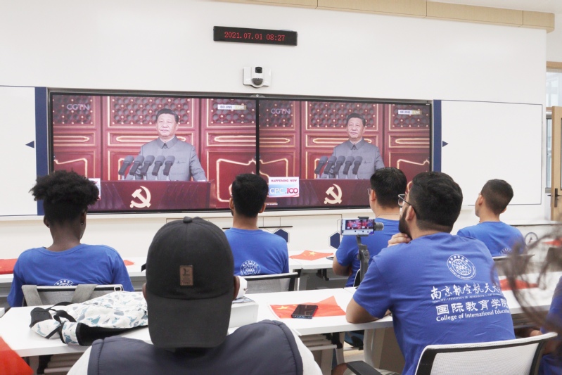 在场的留学们纷纷表达心声,来自也门的硕士生木吉布表示,听完习近平总书记的讲话他非常激动,作为从本科起就在南航就读的留学生,他见证了中国人民不断提升的美好生活,他也感激中国和南航为他所提供优良学习和生活环境。祝愿伟大的中国共产党生日快乐,祝愿中国共产党领导下的中国越来越好。