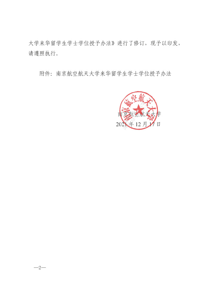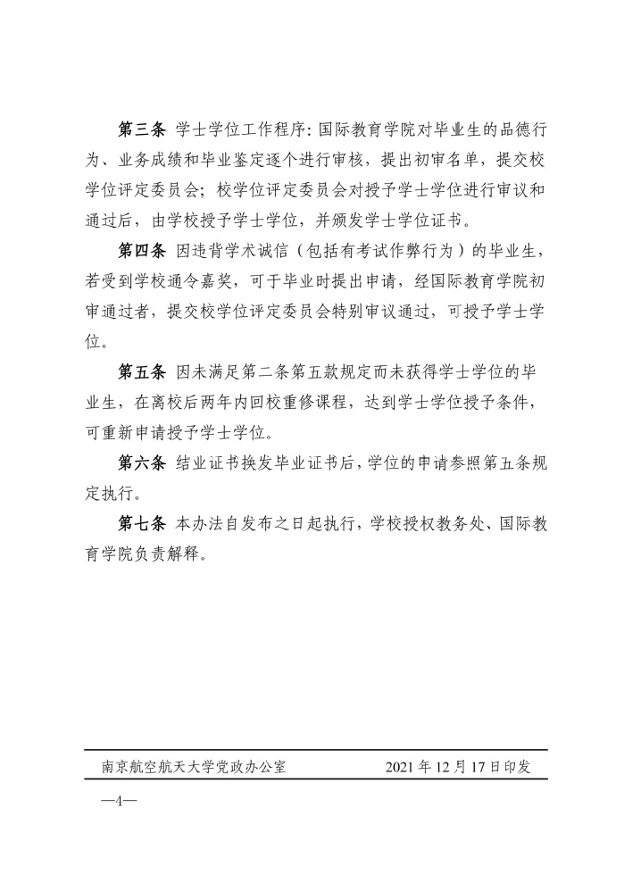西汉姆联来华留学生学士学位授予办法【校教字〔2021〕76号】