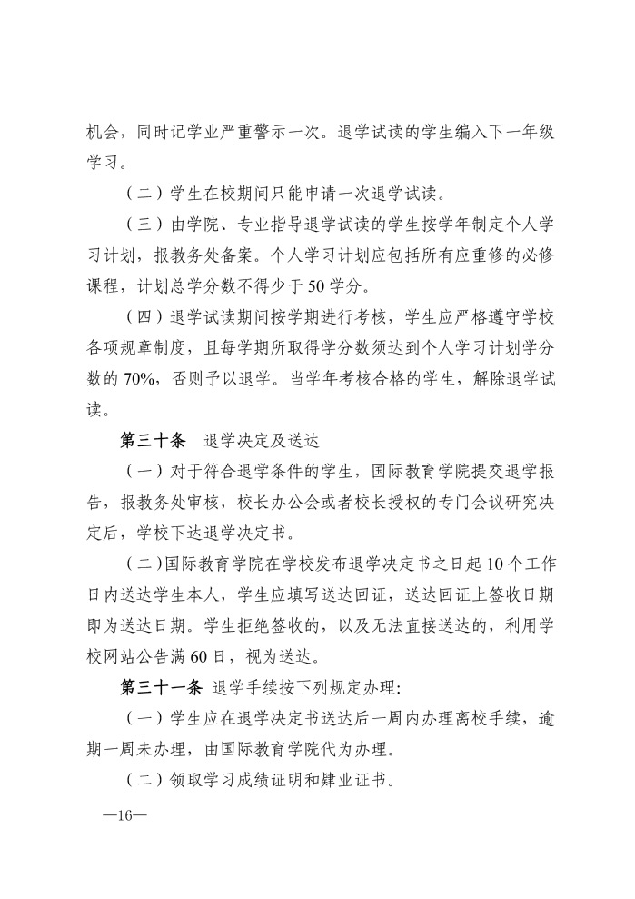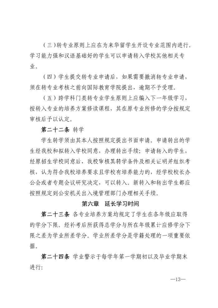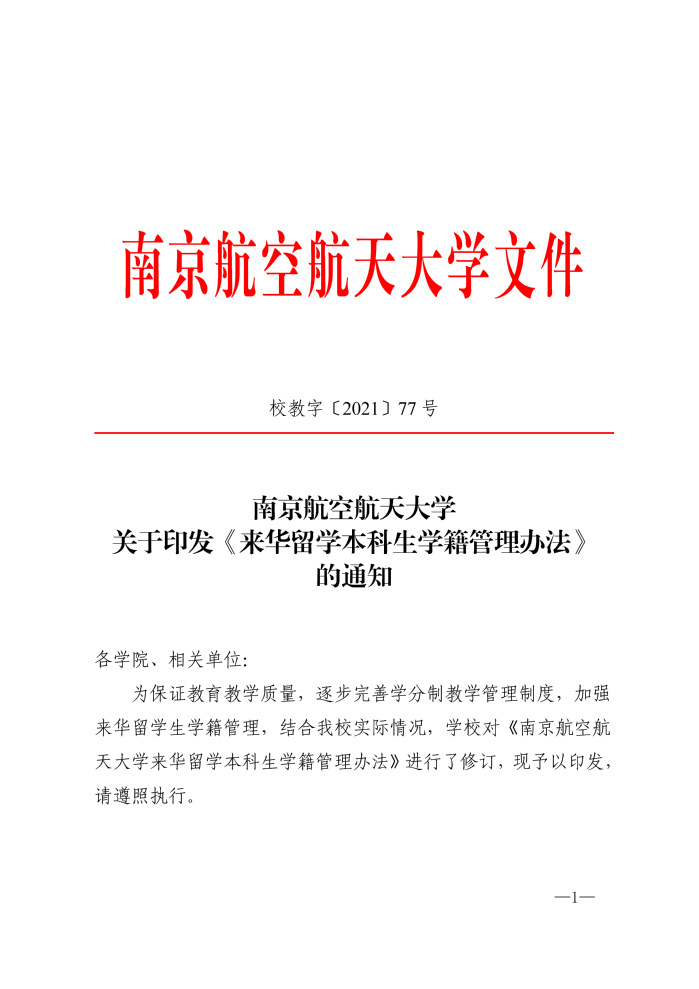 西汉姆联来华留学本科生学籍管理办法【校教字〔2021〕77号】