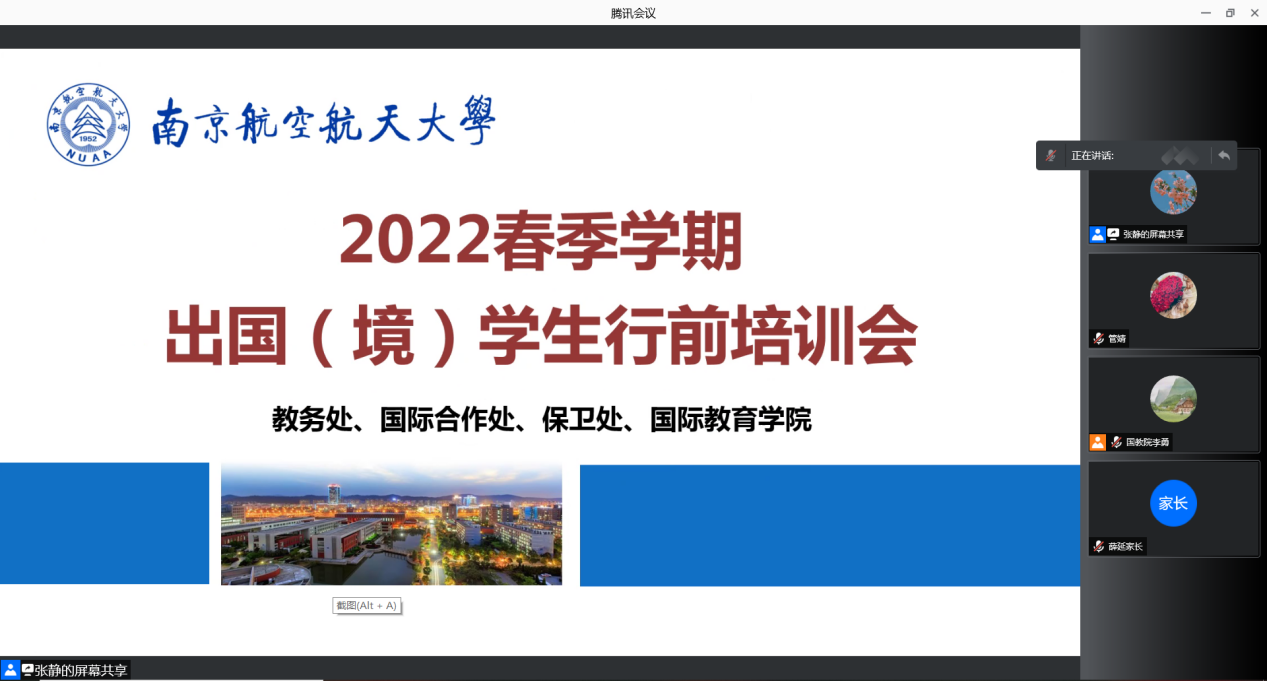 1214日下午,BW·西汉姆联牵头举办了2022春季学期出国(境)学生行前线上培训会,来自航空学院、自动化学院、机电学院、计算机科学与技术学院、经济与管理学院、外国语学院和艺术学院等多个学院的师生和家长参加了本次培训会。除BW·西汉姆联外,国际合作处、保卫处等职能部门领导也受邀参加。