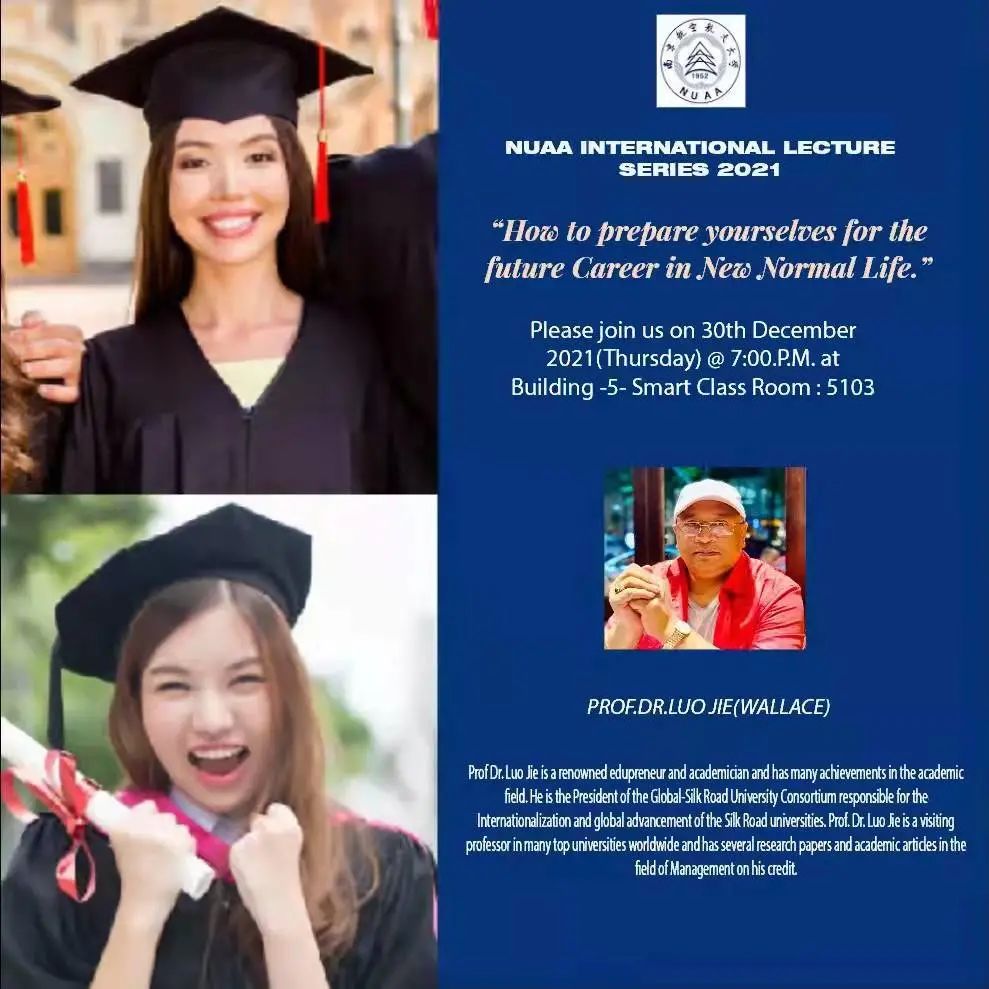 Studying online has become the new normal for the students. Students need guidance and support from experienced professionals to help them cope in the new way of learning. To realize that, College of International Education of NUAA is going to arrange a webinar entitled How To Prepare Yourselves For The Future Career In New Normal Life on 30th December, 2021.