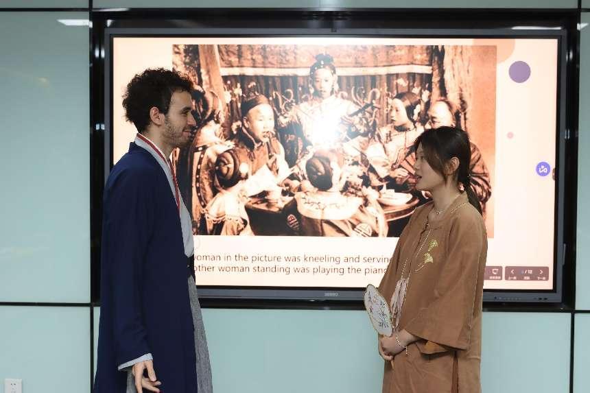 夫子庙的前世今生》以航拍镜头的方式展开一幅壮美的画卷,带领观众感受科举制度的历史兴替,领略夫子庙秦淮河的秀丽风光和历史变化。中外师生仿佛进入与历史人物的对话空间,重回“有朋自远方来,不亦乐乎”的春秋时期。