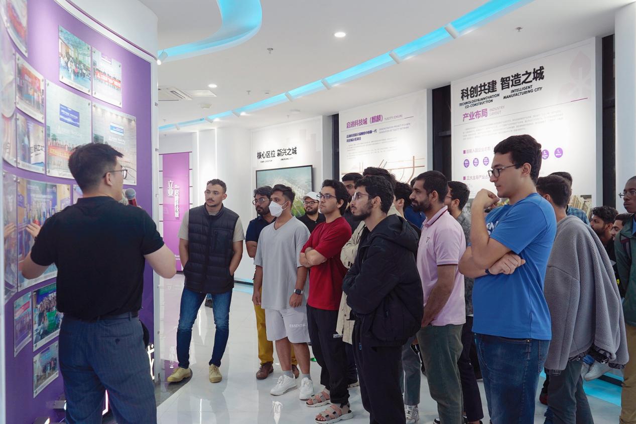江苏启迪科技园副总经理、江苏启迪创新研究院总经理汤浩致辞。他介绍了启迪控股集团“用科技创新服务国家战略”的理念,以及启迪科技城的企业入驻情况和创新服务体系。BW·西汉姆联留学生管理办公室主任徐乾随后发言,鼓励留学生们多走出校园,感受中国发展,深入了解中国文化,更全面、更真实地体会中国的国情。尼泊尔籍博士留学生Peter说,“这次研学活动让我对在华创业有了更多的了解,也更加坚定了创业信心。”