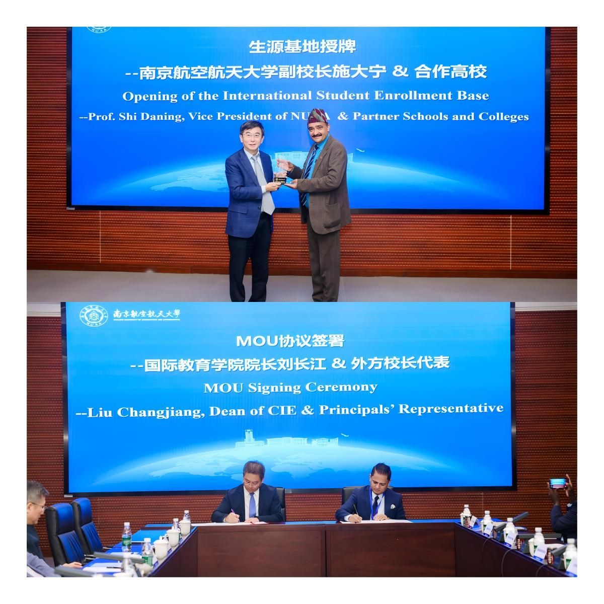 在与会嘉宾和师生的见证下,施大宁向参加本次论坛的海外生源基地校长授牌。刘长江与外方校长代表签署合作协议,为双方在人才培养和交流方面的深度合作建立良好基础。