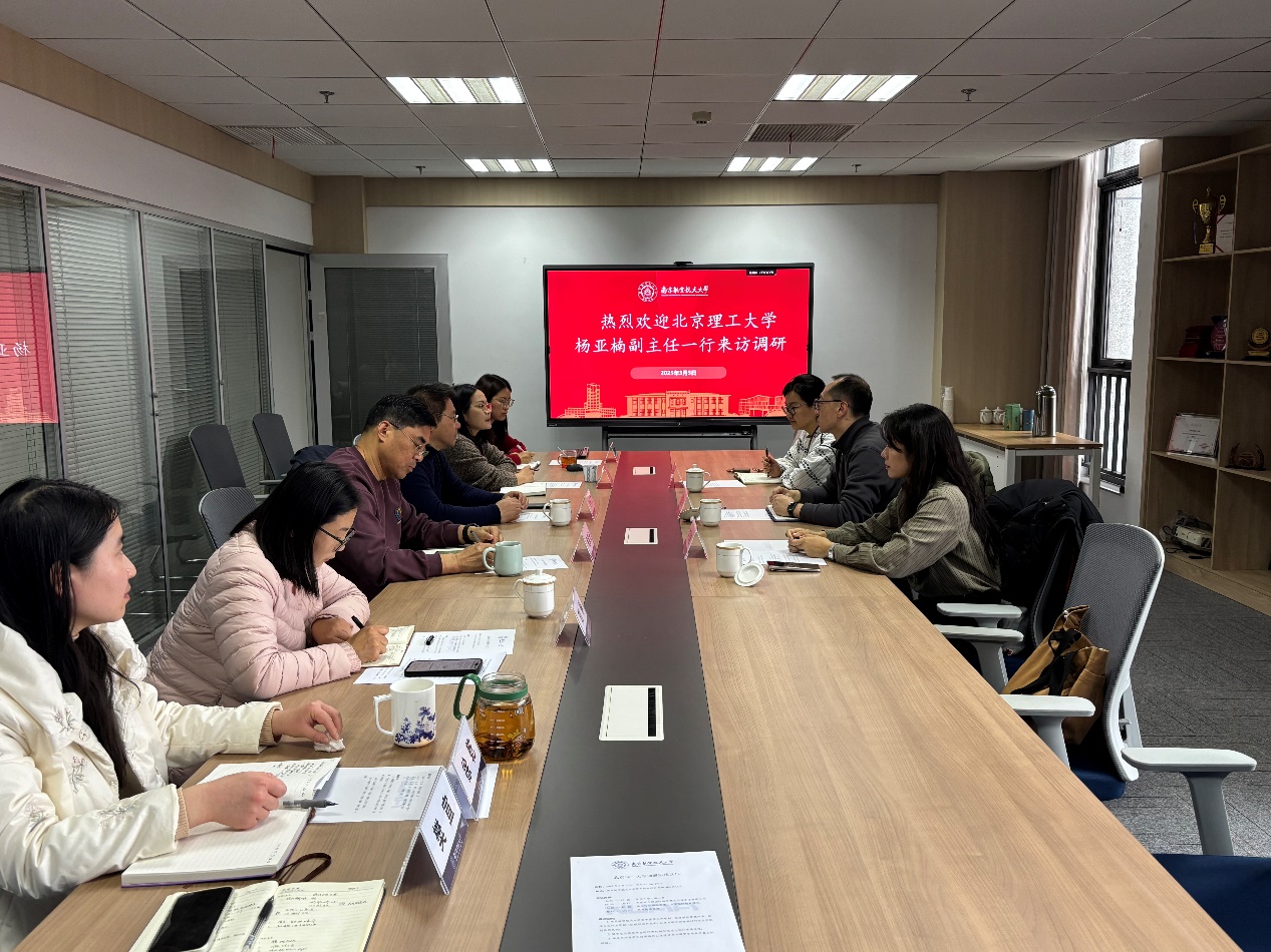 刘长江详细介绍了我校来华留学教育的顶层设计、培养模式与育人成效,重点阐释了我校来华留学生全英文授课本科专业设置调整优化机制、师资队伍选培标准和激励措施、“游觅中国”国情教育品牌活动等。杨亚楠表示,南航在招生培养、趋同化管理、提质增效等方面的成功经验值得借鉴,此次调研交流为北理工进一步完善留学生管理服务体系提供了重要参考。