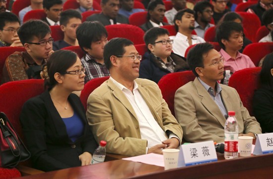 最后,副校长吴庆宪作了重要讲话。他指出,虽然目前我校已拥有来自约70个国家的近700人的留学生队伍,留学生规模在不断扩大,留学生层次也在不断提高,但是我们不能松懈,还要继续抓好留学生的培养工作。他表示,学校高度重视留学生教育,近年来在不断探索留学生教学改革,优化课程设置,提高教学质量。在介绍我校留学生教育发展状况之后,吴庆宪副校长对2013级留学生提出了三点建议:第一、要诚实勇敢、相互包容、维护自己的信誉和学校的声誉;第二、要刻苦学习,做一名有专业能力以及国际视野的新时代留学生;第三、要肩负起传播友谊、传播文化的光荣使命。希望广大留学生能够当好中国与世界其他国家文化交流、友谊传播的使者,促进国际和平与文化的发展融合。