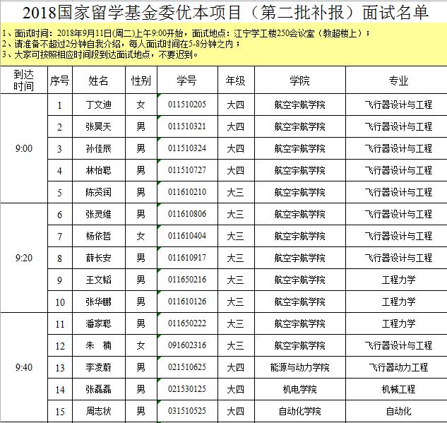 4、 面试结果将在912日(周三)中午12:00前在国教院网站首页公告中公示,不再另行通知学生个人,请大家自己查看。面试通过的同学请务必加入CSC南航之家QQ群,群号:171491948,一定要以自己真实姓名加入,否则不予批准。加入成功以后,请务必把群名片改成2018+姓名+选派学校。此外请公示名单上的同学尽快办理护照。