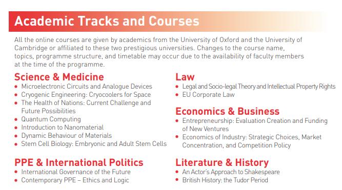 牛剑专业课程自主选 —— 来自牛津剑桥两所顶级大学的专业教师采用在线形式授课,可从文理各专业选1-6门课,每门课3个欧洲学分ECTS(或1.5个美国学分US Credits);