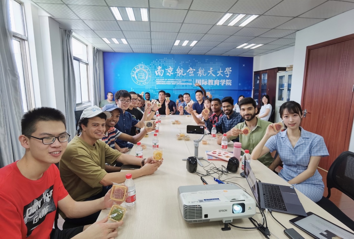 随后,辅导员从“嫦娥奔月”的美丽传说引入中国航空航天的巨大成就,特别是我校叶培建院士团队和孙泽洲总师等杰出校友在“嫦娥探月工程”方面的突出贡献。留学生们备受鼓舞,深感自豪。活动最后,中外学生一起分享南航自制的月饼,并学习演唱经典歌曲“月亮代表我的心”。