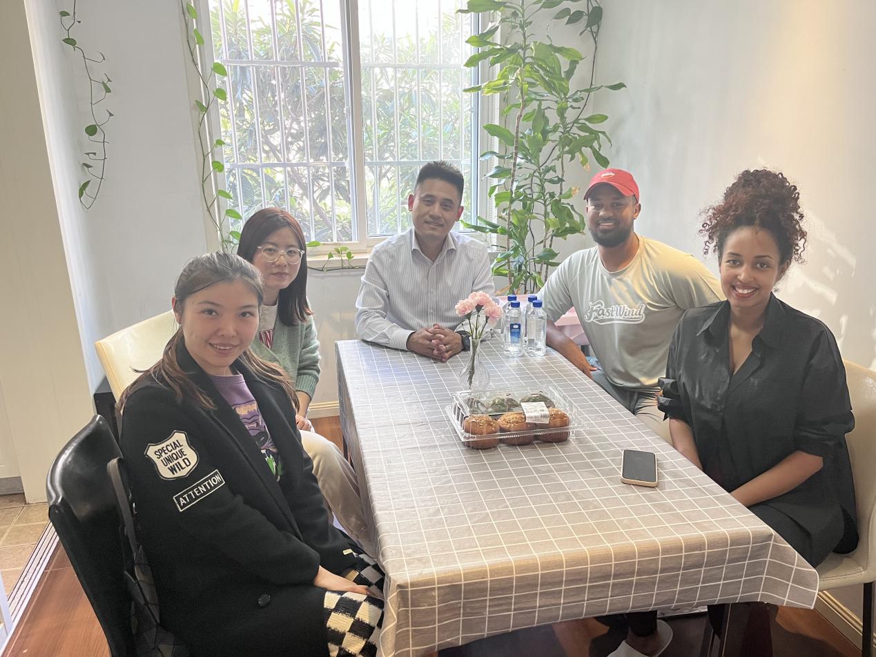 在埃塞俄比亚硕士生叶清家中,陈峰对叶清的课程学习、科研进展以及生活情况进行了深入了解,并鼓励叶清参与学校文化节系列活动,展示国家文化;叶清表示老师们的慰问让他感到十分温暖,他会加强自我管理,做好学习规划,参加学校的各项活动,努力成为中外友好交流的使者。