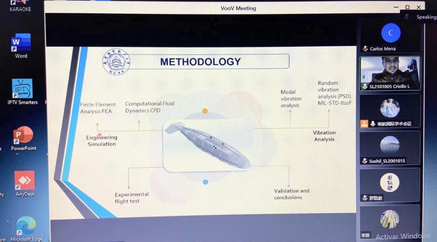 在“航空宇航科学与技术”分论坛上,厄瓜多尔籍硕士生林克在线上以Rotor Blade Aerodynamic Shape Optimization Design Under High Altitude Environment”为主题进行汇报交流。林克表示虽然受疫情影响未能到校参会,但是远在家乡的他同样感受到学校浓厚的学术氛围,并期待能够早日顺利入境返校。