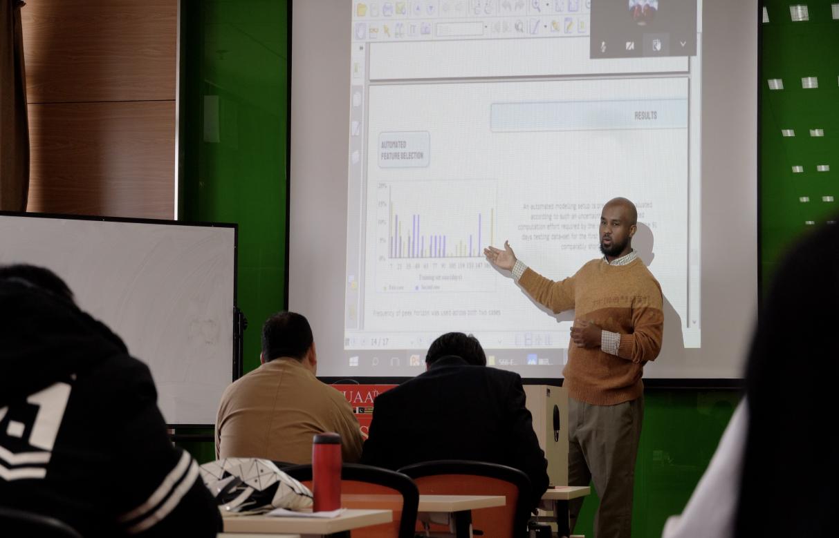 此外,来自土耳其的卡亚、尼泊尔的苏仕、埃塞俄比亚的叶清等留学研究生分别在航空宇航科学与技术、动力工程及热物理、民航等分论坛进行了线上线下的汇报和交流。