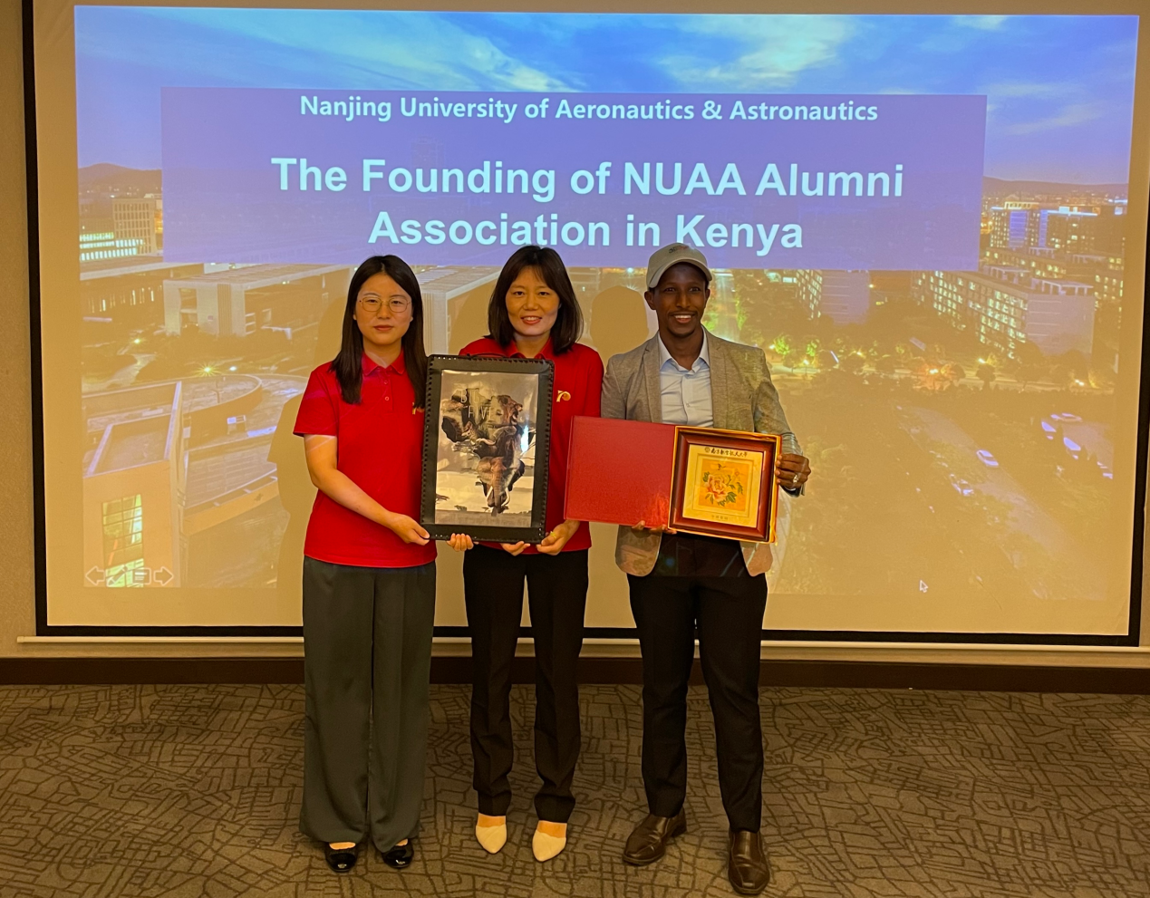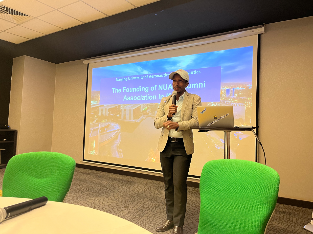 马森一直致力于中国与肯尼亚之间的文化与经济交流,曾是南京市第一位外国留学生创新创业签证获得者。他对母校老师以及校友们的到来表示热烈欢迎并代表肯尼亚校友会向学校赠送了纪念礼物。发言中,他回忆了在校期间学习生活点点滴滴,代表肯尼亚校友表达了对母校的感谢,祝愿南航未来发展越来越好。